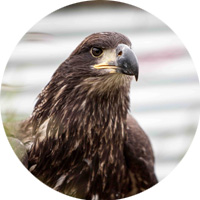 When a storm blew down a large pine with an eagle nest, this eagle suffered a broken leg. The Preserve’s veterinary staff pinned and cast the broken bone. The eagle learned to fly in our large aviary before we released it back into the wild.