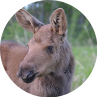 Separated by dogs from her mother near birth, this moose calf was too weak to stand when she arrived. With months of round the clock parenting and care, she flourished – a rare thing for moose in human care. Today, she shares a 33 acre wetland habitat with two other moose at the Preserve.